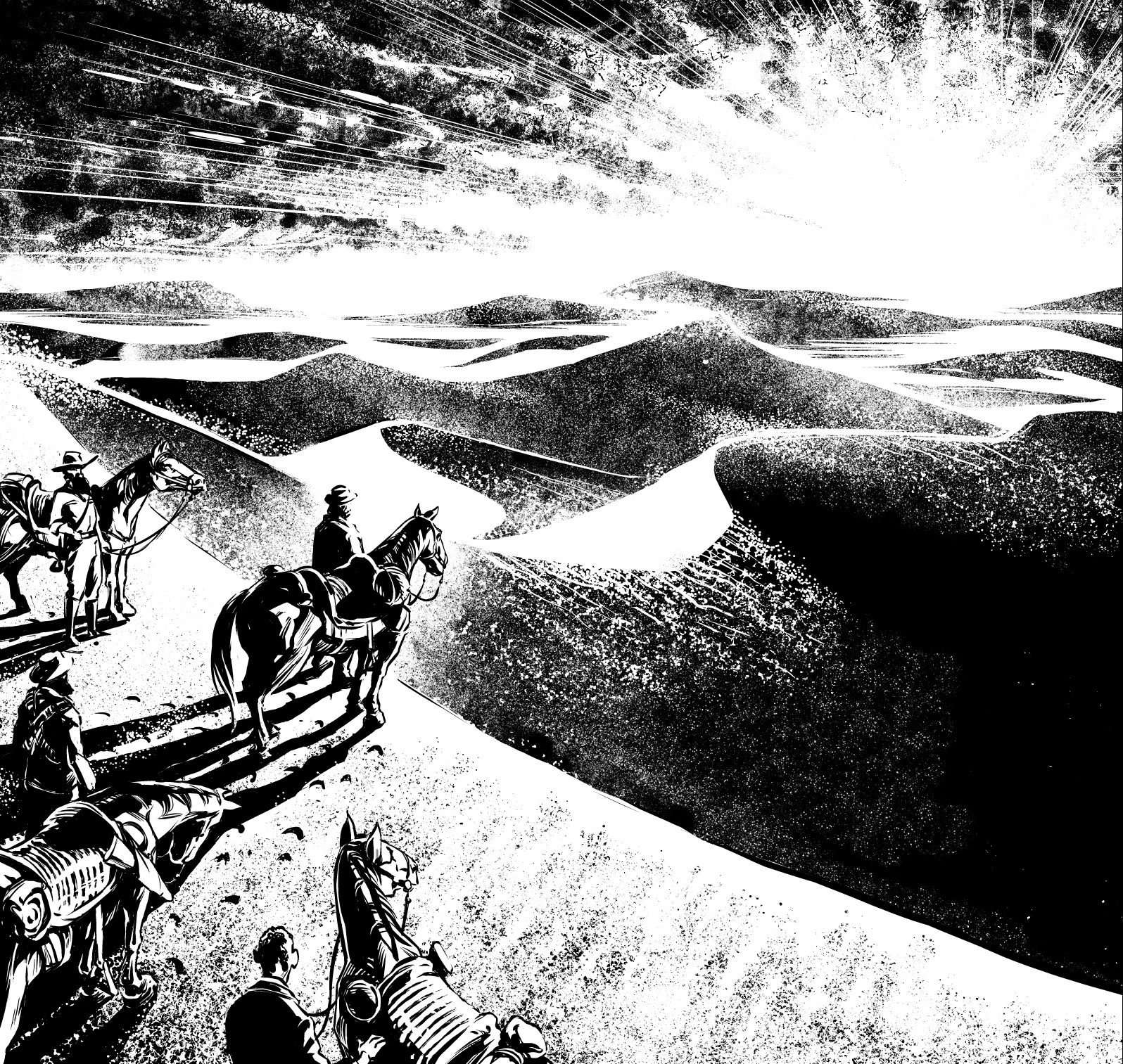 L’idea di trovarmi a disegnare una storia di Gianfranco Manfredi per la “Sergio Bonelli” mi ha creato inizialmente qualche difficoltà; la pressione era forte. Arrivavo dopo disegnatori già affermati come Alessandro Nespolino, Darko Perovic e Vladimir “Laci” Kristic. C’è stata anche la paura di non rappresentare al meglio il periodo storico, gli ambienti, gli sfondi… mi sono dovuto documentare molto.