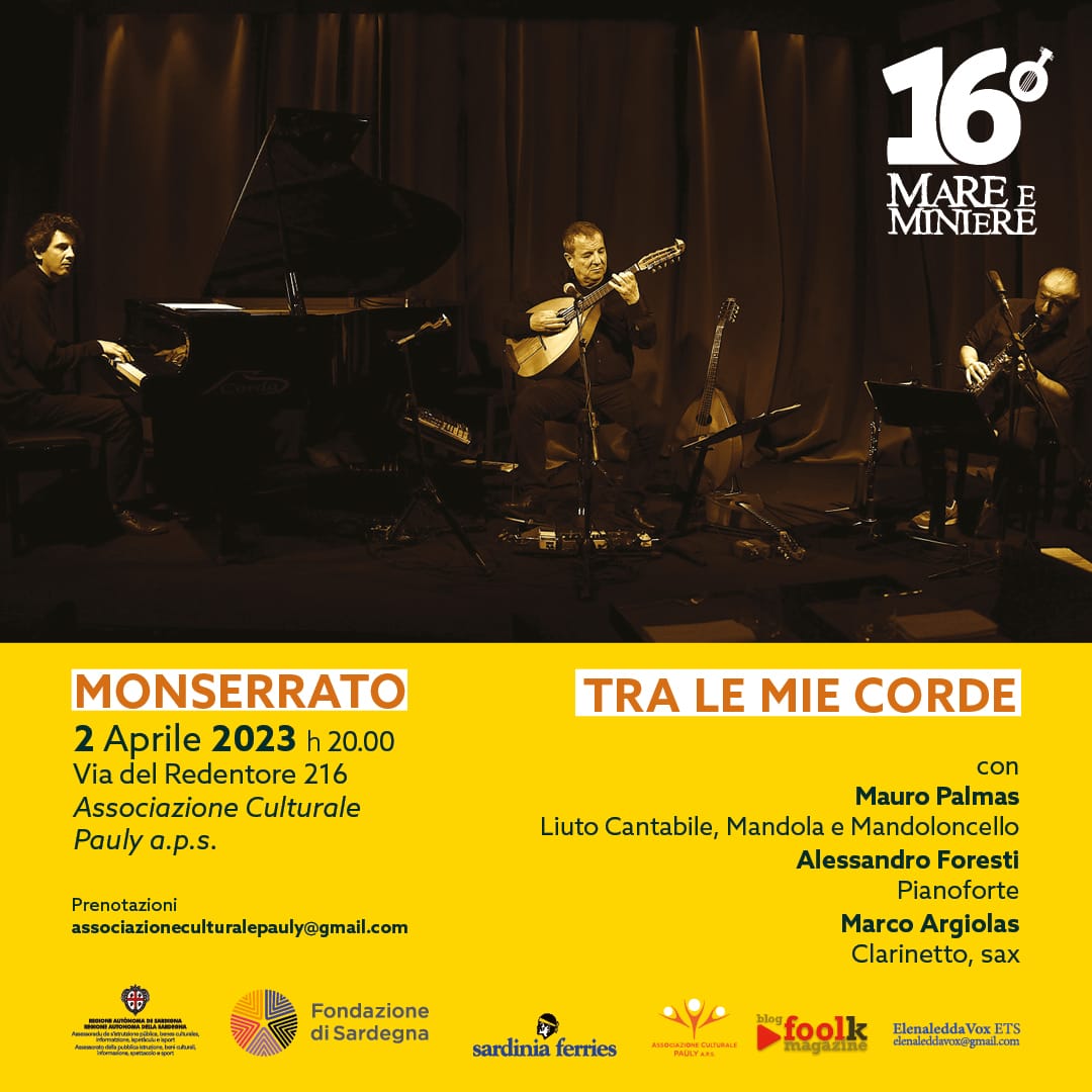 Il polistrumentista e compositore cagliaritano presenta dal vivo un’anteprima del suo nuovo progetto discografico, dal titolo emblematico “Tra le mie corde”, che sta registrando in questi giorni proprio negli stessi spazi; conterrà più di un’ora di musica, con molti brani inediti e altri già in repertorio arrangiati per questa produzione. Accanto a Mauro Palmas con i suoi abituali strumenti a plettro – liuto cantabile, mandola e mandoloncello -, due affiatati compagni di altre avventure musicali: Alessandro Foresti al pianoforte e Marco Argiolas al clarinetto e al sassofono. In uscita prevista in autunno per l’etichetta Squilibri, il disco sarà unito a un libro con testi scritti da Gabriela Ledda su ricordi, storie e aneddoti della lunga e intensa esperienza musicale di Mauro Palmas cominciata quasi cinquant’anni fa.