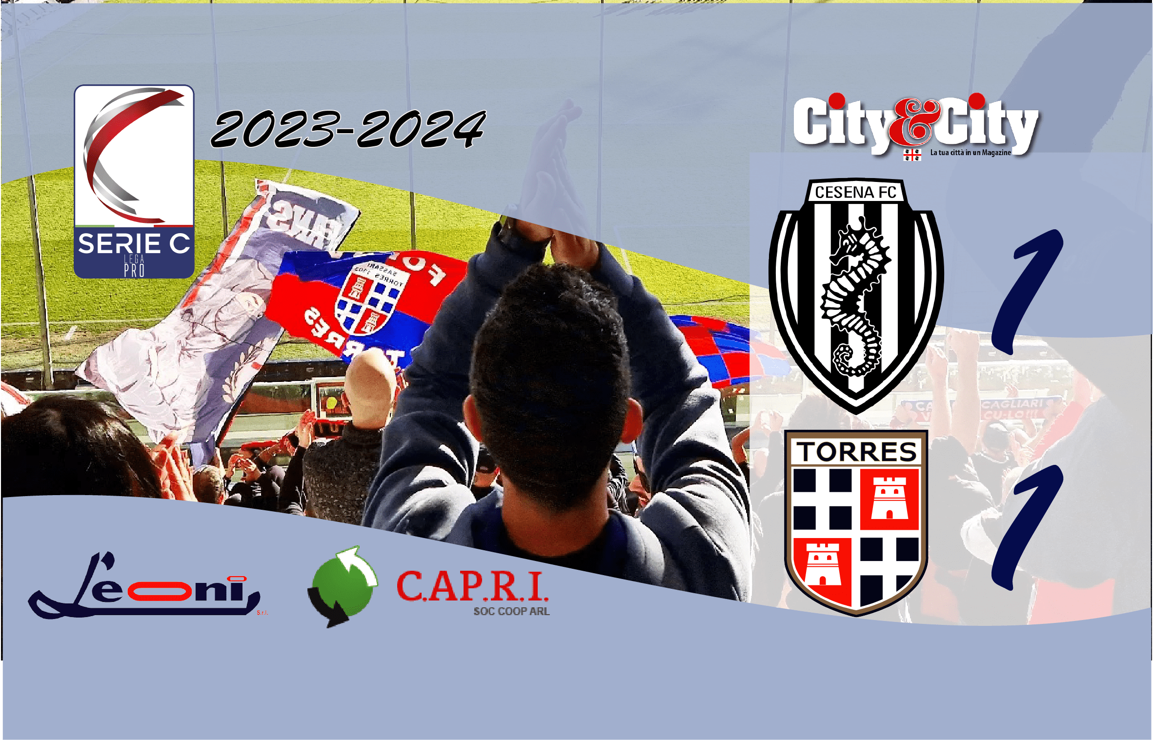 In qualche modo Cesena rappresentava l’esame di maturità, un crocecia che doveva attestare il reale valore di una squadra che ha già vinto il “suo” campionato personale con una società lungimirante e dei supporters che conquistano simpatie e rispetto anche in trasferta: i 500 all’Orogel Stadium non sono passati inosservati. E l’esame è stato brillantemente superato contro la corazzata di mister Domenico Toscano costruita per il salto di categoria. Al di là del pareggio è stata importante la reazione immediata al vantaggio interno appena iniziata la seconda frazione. Una mazzata ma non per la mentalità dei rossoblu e il gioco espresso dagli uomini di mister Greco che possono guardare con ottimismo al proseguo della stagione. Ecco il pareggio della Torres a Cesena va riletto in questo senso come una vittoria. I bianconeri hanno attaccato molto, ma la Torres ha ribattuto colpo su colpo. Grande atmosfera di pubblico sugli spalti, con la presenza di tanti tifosi sassaresi. Cesena sempre primo in classifica, con 43 punti. Ma la Torres è lì, a due lunghezze.