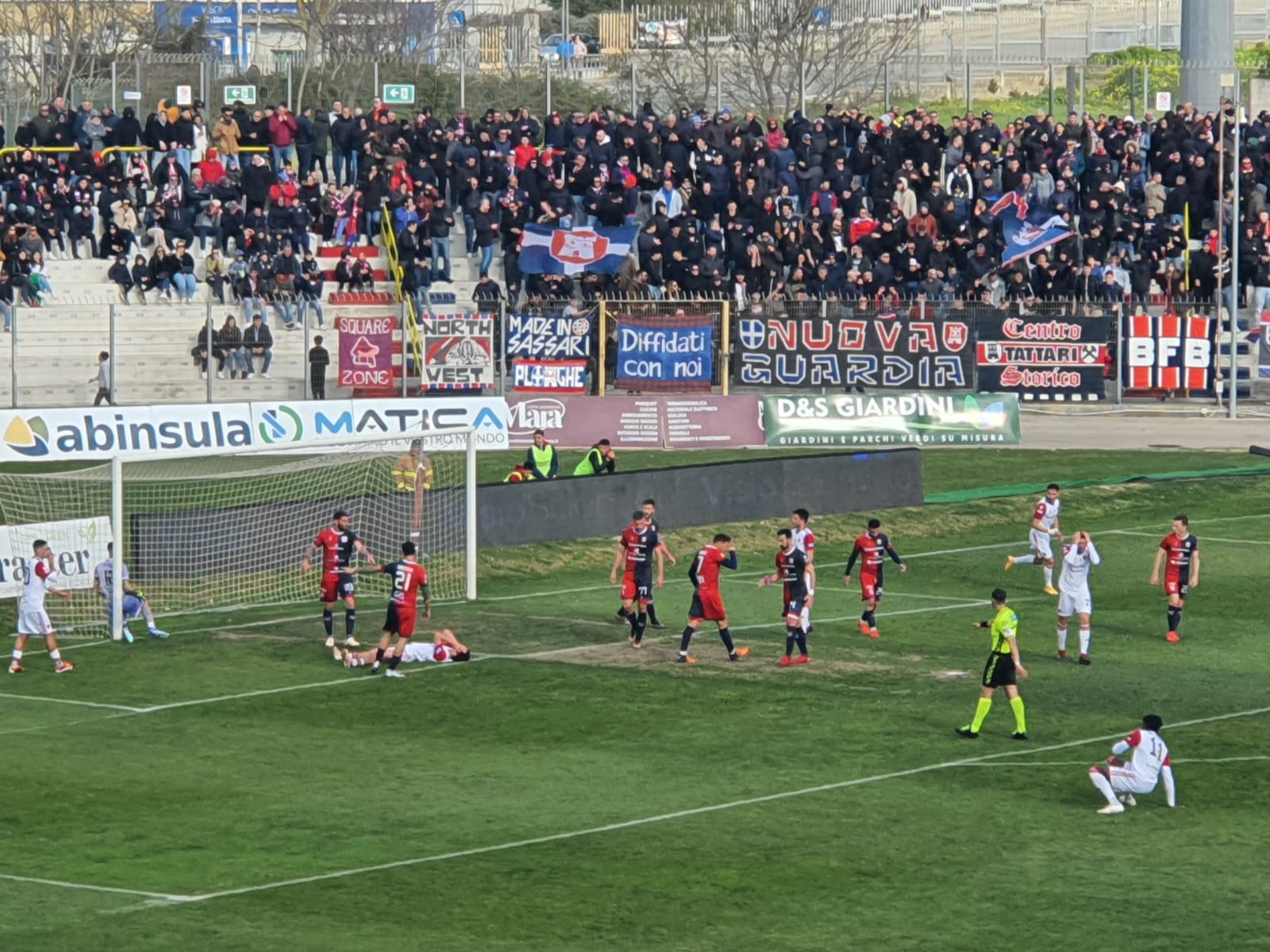 Niente ‘legge del Vanni Sanna’. La Torres perde l’imbattibilità casalinga e lascia i 3 punti al Sestri Levante a cui è bastato un rigore sul finire del primo tempo di Pane per aver ragione di Scotto e compagni.  I rossoblu stanno vivendo il momento più delicato di una stagione fin qui straordinaria, oltre le più rosee aspettative aspetto da ricordare sempre. Le due sconfitte esterne consecutive, maturate a Rimini e soprattutto il roboante 5-1 di Carrara richiedevano una reazione immediata che non c’è stata. Squadra che sembra aver perso quella convinzione nei propri mezzi, una qualità che ha caratterizzato gli uomini mister Greco sopratutto tra le mura amiche. Prima del penalty, al 26esimo Zaccagno rischia la frittata su una punizione di Candiano non irresistibile, ma evita il peggio. Passano due minuti ed i liguri sfiorano il vantaggio con il colpo di testa di Parlanti, che finisce incredibilmente alto da pochi passi. Al 29esimo ancora Sestri avanti, con Omoregbe che si fa parare il diagonale da uno Zaccagno questa volta sicuro. Un primo che si chiude senza tanti sussulti.