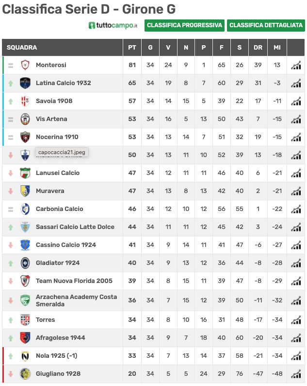 Fonte classifica: Tuttocampo.it