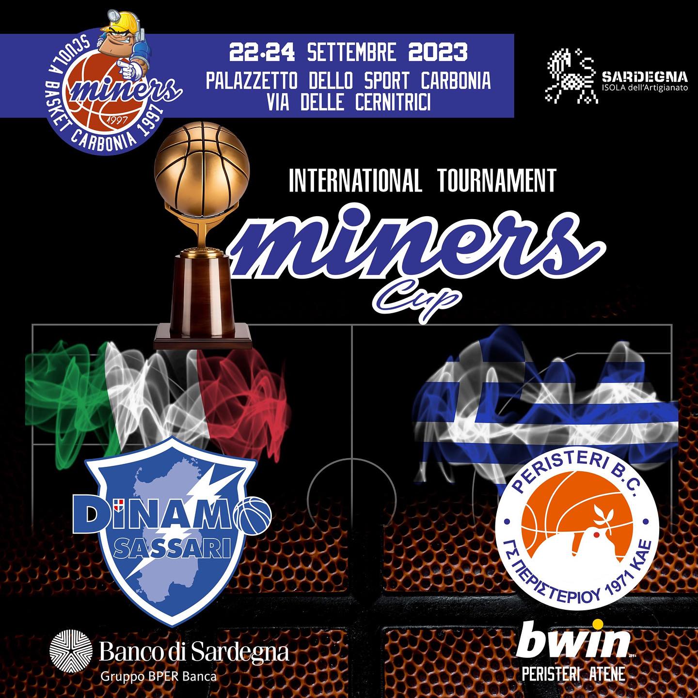 La Dinamo Banco di Sardegna chiude il programma della preseason 2023/2024 col botto: prima dello start della regular season gli uomini di coach Piero Bucchi faranno tappa nel sud dell’isola dove andrà in scena la prima edizione del Trofeo Miners Cup. A distanza di qualche anno il grande basket ritorna a Carbonia, nella suggestiva cornice del Palazzetto dello sport di via delle Cernitrici, con il doppio incontro tra il Banco di Sardegna e la squadra ellenica del Peristeri Atene. L’appuntamento è fissato per il 22 e il 24 settembre con palla a due alle 20: l’evento è organizzato dal Comune di Carbonia insieme alla scuola basket Miners di Carbonia.