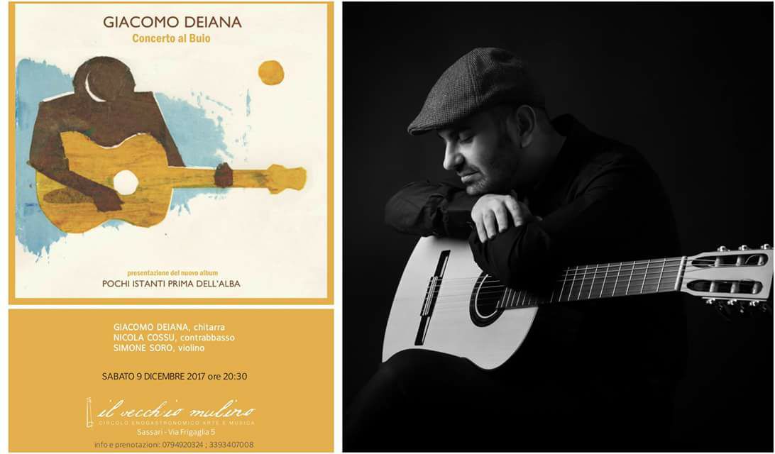 S’intitola “Pochi istanti prima dell’alba” il nuovo album del chitarrista, compositore e cantante Giacomo Deiana che sarà presentato nell’intrigante “concerto al buio”, in programma sabato 9 dicembre alle 20,30 a Il Vecchio Mulino di via Frigaglia a Sassari.