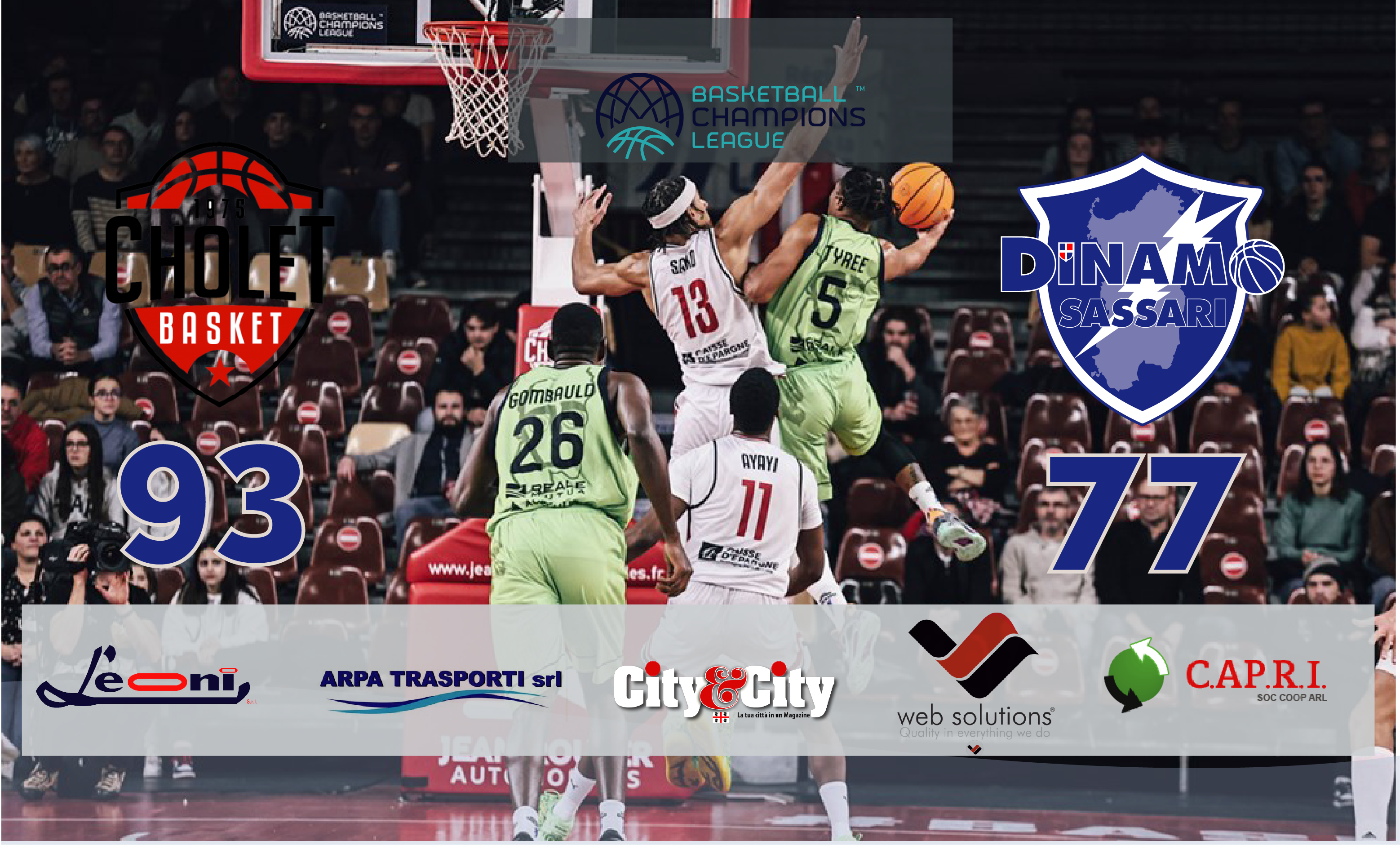 Cholet respinge ogni tentativo di Sassari, la squadra di Vila si qualifica prima con Randall poi con la tripla di Tillie che manda i titoli di coda, finisce 93-77.