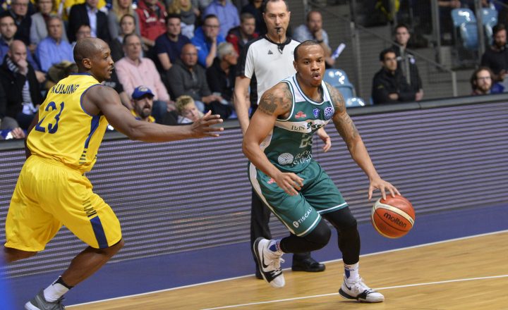 Nel secondo tempo l’Ewe Basket spezza i tentativi di rimonta della Dinamo in una serata no. Sugli spalti della Ewe Arena tante bandiere dei quattro mori e tanti tifosi sardi che vivono in Germania pronti a sostenere i giganti biancoblu per il Game 9.