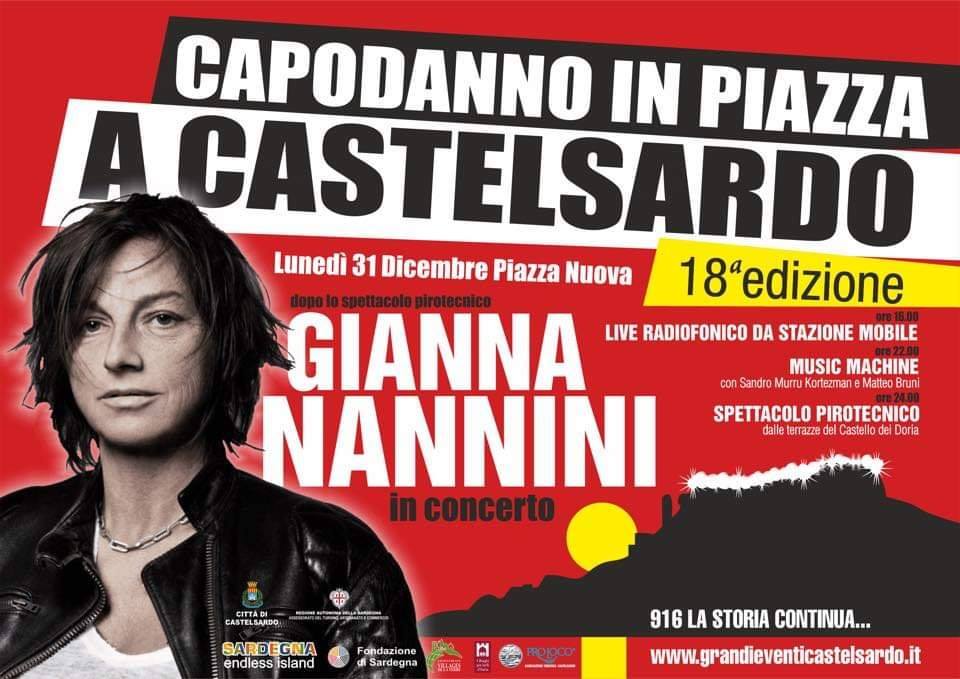 Gianna Nannini sarà la protagonista del Capodanno in piazza a Castelsardo. La storica rocker italiana, con una carriera iniziata negli Anni Settanta termometro delle qualità della cantautrice ma anche dell’affetto che suscita tra i fan, si esibirà con il suo repertorio che da quarant’anni incontra il gradimento del pubblico.  Intramontabili America e le hits degli Anni Ottanta Fotoromanza, I maschi e Bello e impossibile  che si aggiudicò due dischi di platino solo in Italia e che certamente non mancheranno di risuonare nella suggestiva cornice del Castello dei Doria.