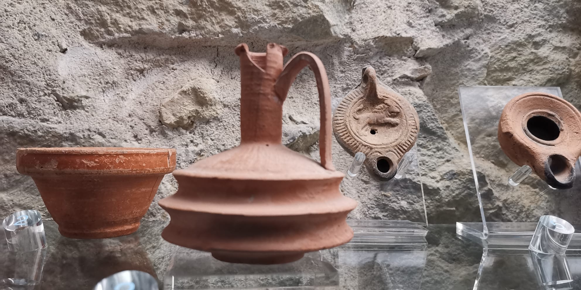 “Il museo Villa Abbas – ci aiutiamo con le note di Sardara Turismo, ma ce lo ha spiegato anche l’ottima guida – non è solo da vedere ma anche da toccare. Infatti, i principali reperti presenti in ogni vetrina sono esposti in un percorso tattile parallelo: delle mensole in cui sono collocate le copie fedeli delle ceramiche conservate nelle vetrine, con i disegni eseguiti in rilievo. In questo modo, attraverso il tatto, anche i non vedenti hanno la possibilità di entrare a contatto con l’oggetto e conoscerne i materiali e le forme. I reperti provengono da tutte le zone limitrofe al borgo: dall’antica città costiera di Neapolis fino al paese di SanSperate. Le vetrine mostrano gli oggetti di vita quotidiana di un tempo, i materiali usati per procurare il cibo, per difendersi, per costruire le case e le strutture di difesa.