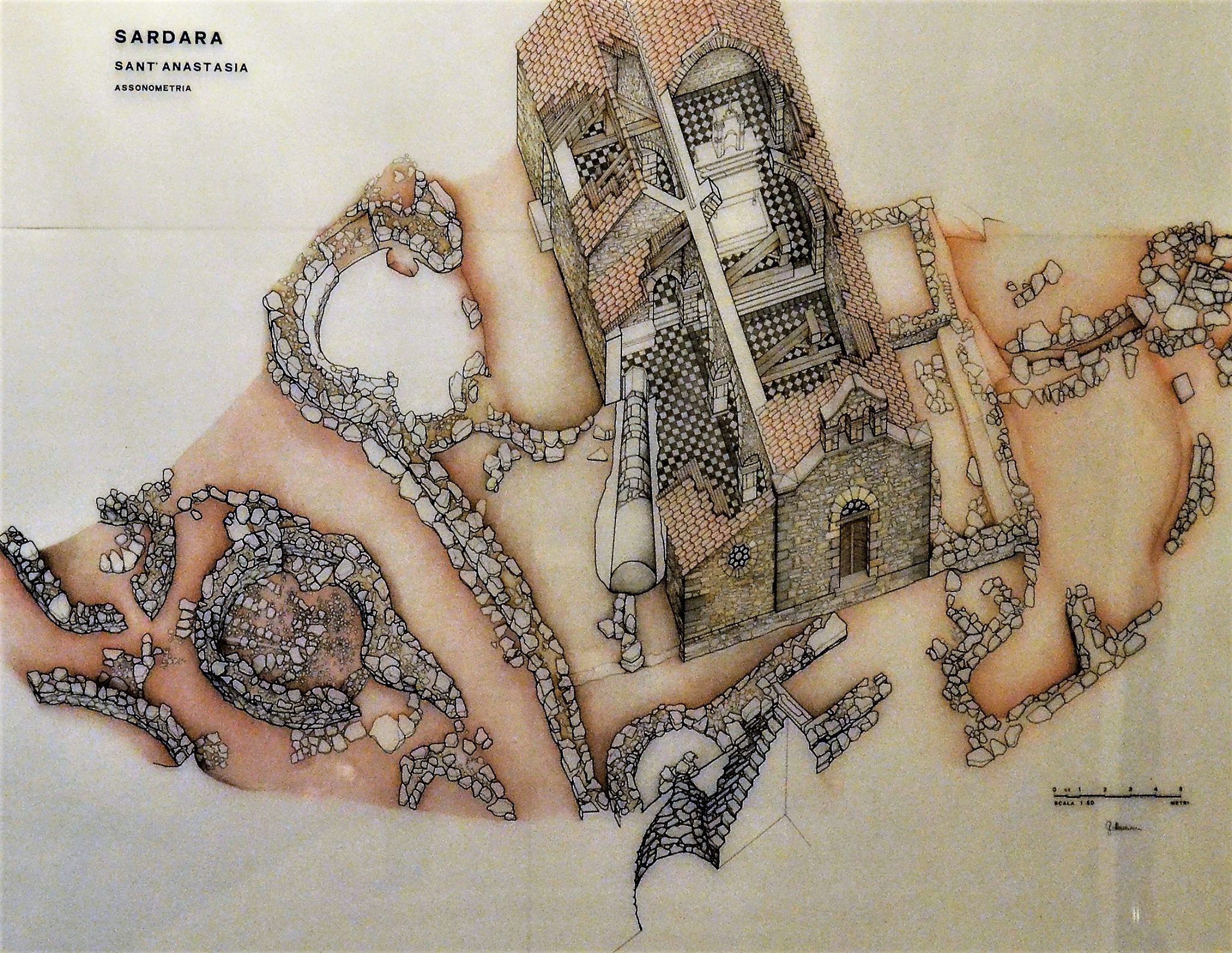 La nostra visita è cominciata dalla chiesa di Santa Anastasia. La nostra voglia di conoscere è stata alimentata dalle ricerche cominciate nel 1913 da Antonio Taramelli. L’archeologo friulano per oltre un anno scavò tutt’intorno al santuario, ma solo dopo lungo tribolare venne alla luce un pozzo sacro completamente costruito con pietre non lavorate, non toccate dal ferro. Una scoperta davvero eclatante, perché solo a pochi passi da lì, dentro la chiesetta, alimentato da una vigorosa vena d’acqua, c’è anche un’altra fonte conosciuta in paese come sa funtana de is dolus (la fonte dei dolori). “Considerata dai sardaresi acqua dai poteri miracolosi, da sempre si ritiene avesse la capacità di guarire molti mali in virtù dell’influsso magico e curativo”, si legge nel blog nurnert.net.