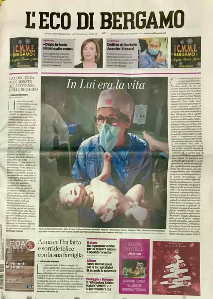 A scovarla sul web, adesso, è stato L’Eco di Bergamo, che l’ha pubblicata sulla prima pagina del giornale, in edicola nel giorno della Vigilia di Natale. «È sicuramente un motivo di orgoglio per noi – afferma il direttore dell’unità operativa di Ginecologia e Ostetricia dell’Aou di Sassari professor Salvatore Dessole – che siamo il punto nascita di riferimento sul territorio».