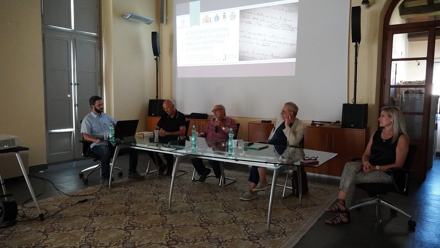 Il saluto introduttivo dell’assessora Laura Useri ha lasciato spazio all’illustrazione del progetto da parte dei relatori Maurizio Virdis, filologo e linguista dell’Università di Cagliari, Mario Marras, poeta ed esperto di lingua sassarese e Riccardo Mura, fonetista ed esperto di gallurese, vernacolo che unitamente al turritano costituisce nel nord Sardegna l’area sardo-corsa.