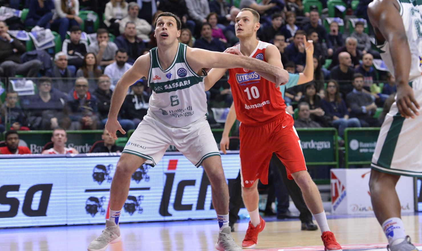 Al rientro dall’intervallo lungo la Dinamo è più grintosa che mai, e Scott Bamforth porta i suoi in vantaggio iniziando con un break di 8-4. I giganti mantengono il vantaggio conducendo la terza frazione, Utena prova ad accorciare le distanze con Gaines e Guscikas, ma la difesa della Dinamo concede molto poco. Al 30′ il tabellone dice 69-55. La Dinamo, inarrestabile, prosegue la sua corsa bombardando dall’arco con Spissu, Bamforth e Planinic. In un ultimo sforzo Utena cerca di riportarsi in partita con Guscikas, ma il Banco conduce il match fino alla fine, chiudendo al Palaserradimigni 93-78.