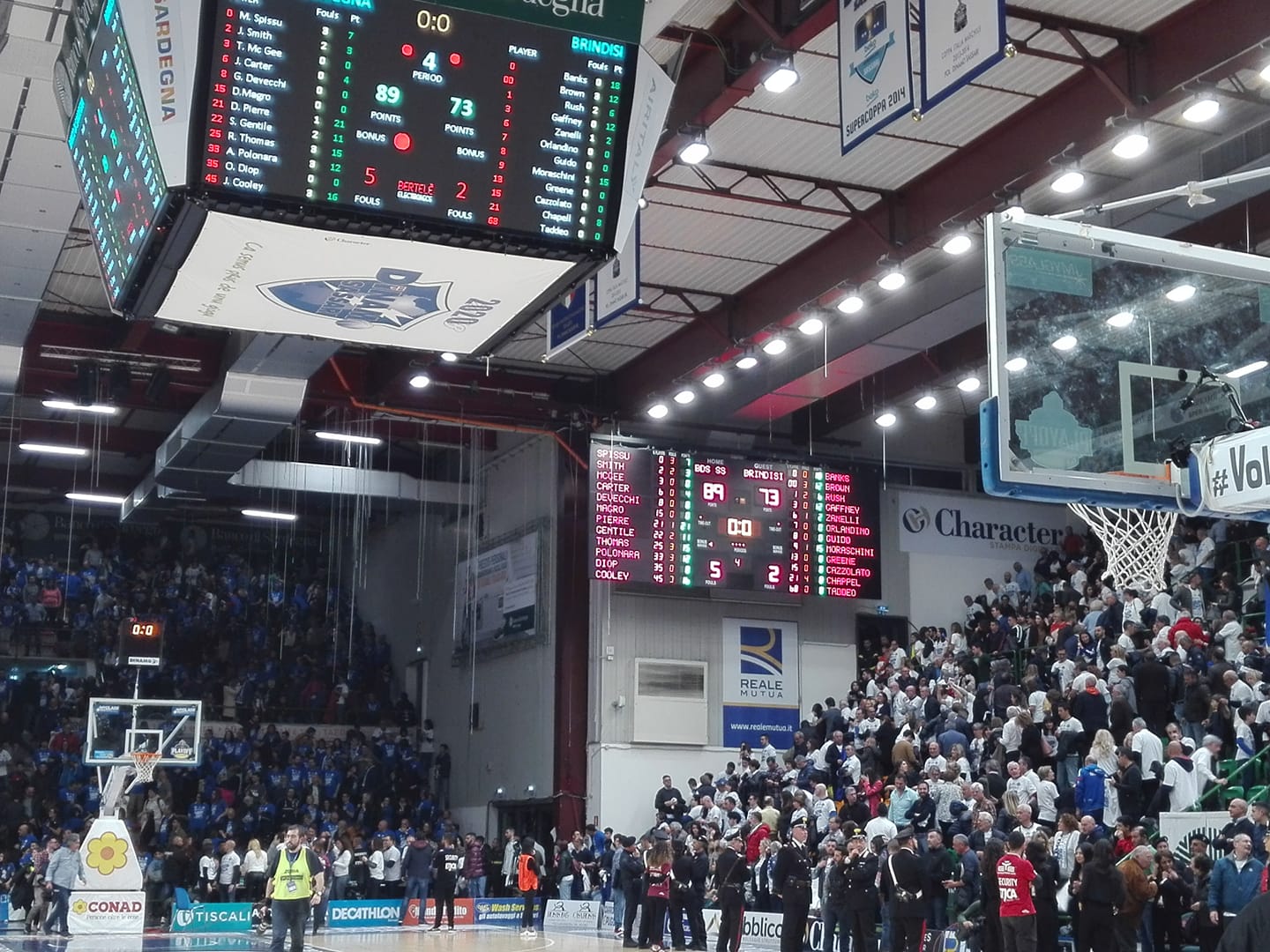 Chappell e Moraschini impattano da 3, la Dinamo reagisce: Pierre “di tabella”, rubata di Spissu, tap-in vincente di Gentile, 53-52 al 26′. Decisivo ancora una volta il trio italiano: Spissu, Gentile e Polonara portano energia e punti in campo, la tripla di Pierre completa l’opera, nuovo +9 (63-54). I giganti reggono bene l’urto avversario e tengono saldo il solido vantaggio, al 30′ Banks chiude sul 67-59. Sale in cattedra Dyshawn Pierre il tuttofare, la tripla del canadese vale il +11, Stefano Gentile specialista difensivo, Brindisi tenta di rientrare ma il Banco lavora bene sotto le plance. La coppia Spissu-Pierre fa la differenza e a 1’30” dalla fine i giganti si ritrovano sull’ 86-70, Smith sigilla il risultato, finisce 89-73. Decima vittoria consecutiva in LBA, diciassettesimo risultato utile di fila, il Banco dei record si porta sull’ 1-0 nella serie, lunedì al PalaSerradimigni la gara2.