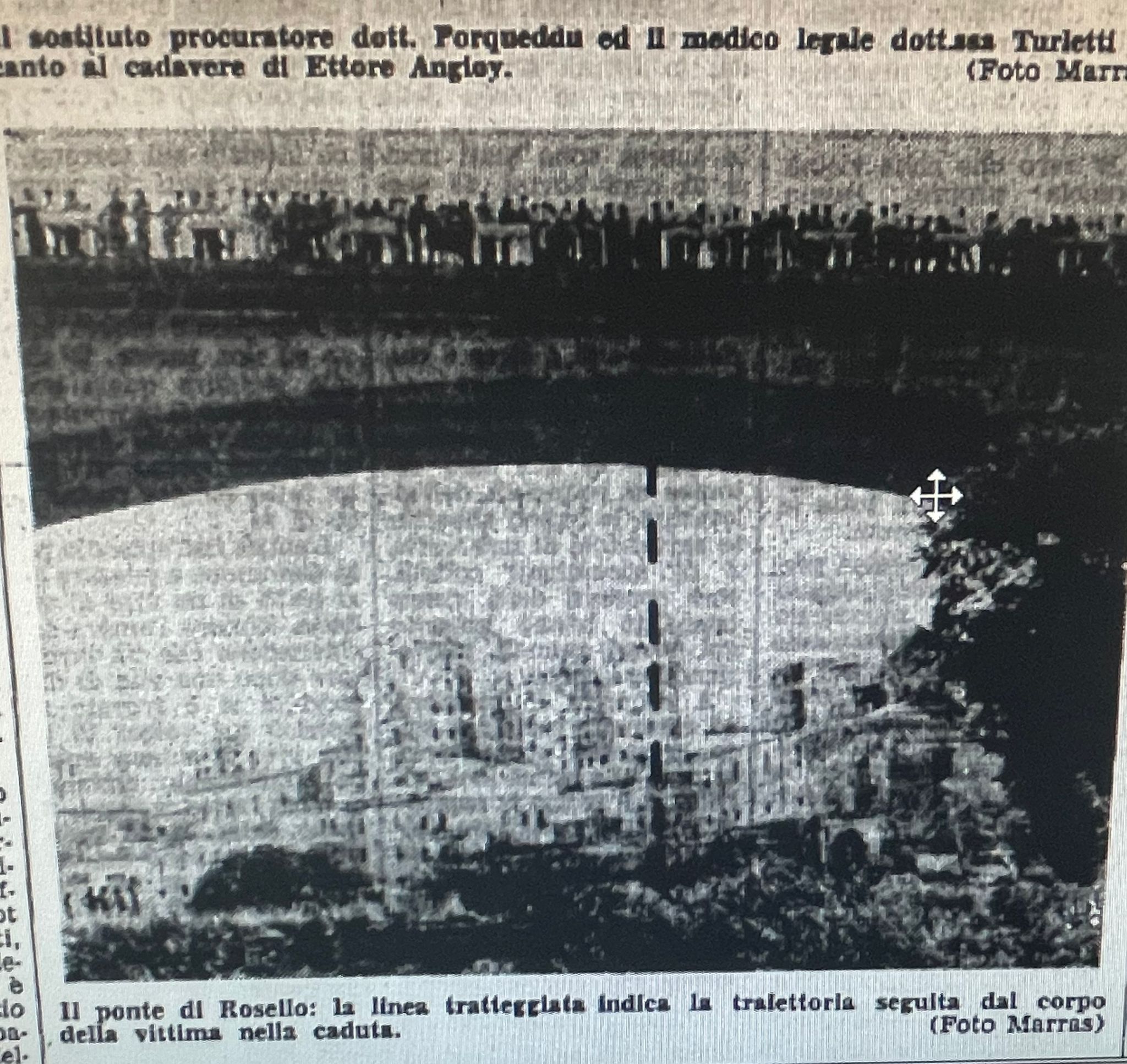 Il padre di Ettore, Pier Luigi, si è presentato in questura per denunciare la scomparsa del figlio, ignaro del tragico destino che lo attendeva. La macabra scoperta è avvenuta nella mattinata del Giorno dopo , quando i soccorritori della Croce Verde hanno trovato il cadavere del giovane raggomitolato accanto a un cespuglio, sotto la prima arcata del ponte. Gli accertamenti medici, condotti dal sostituto procuratore Dottor Porqueddu e dalla dottoressa Marina Turletti, non hanno evidenziato ferite gravi, a parte una contusione allo zigomo.
