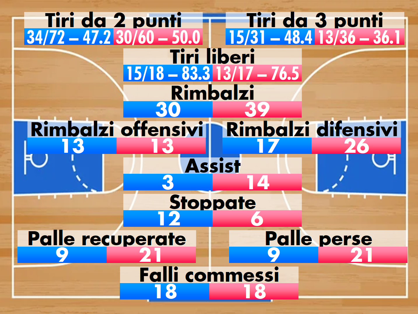 PARZIALI: 1Q: 27-27, 2Q: 22-21, 3Q: 24-23, 4Q: 25-26