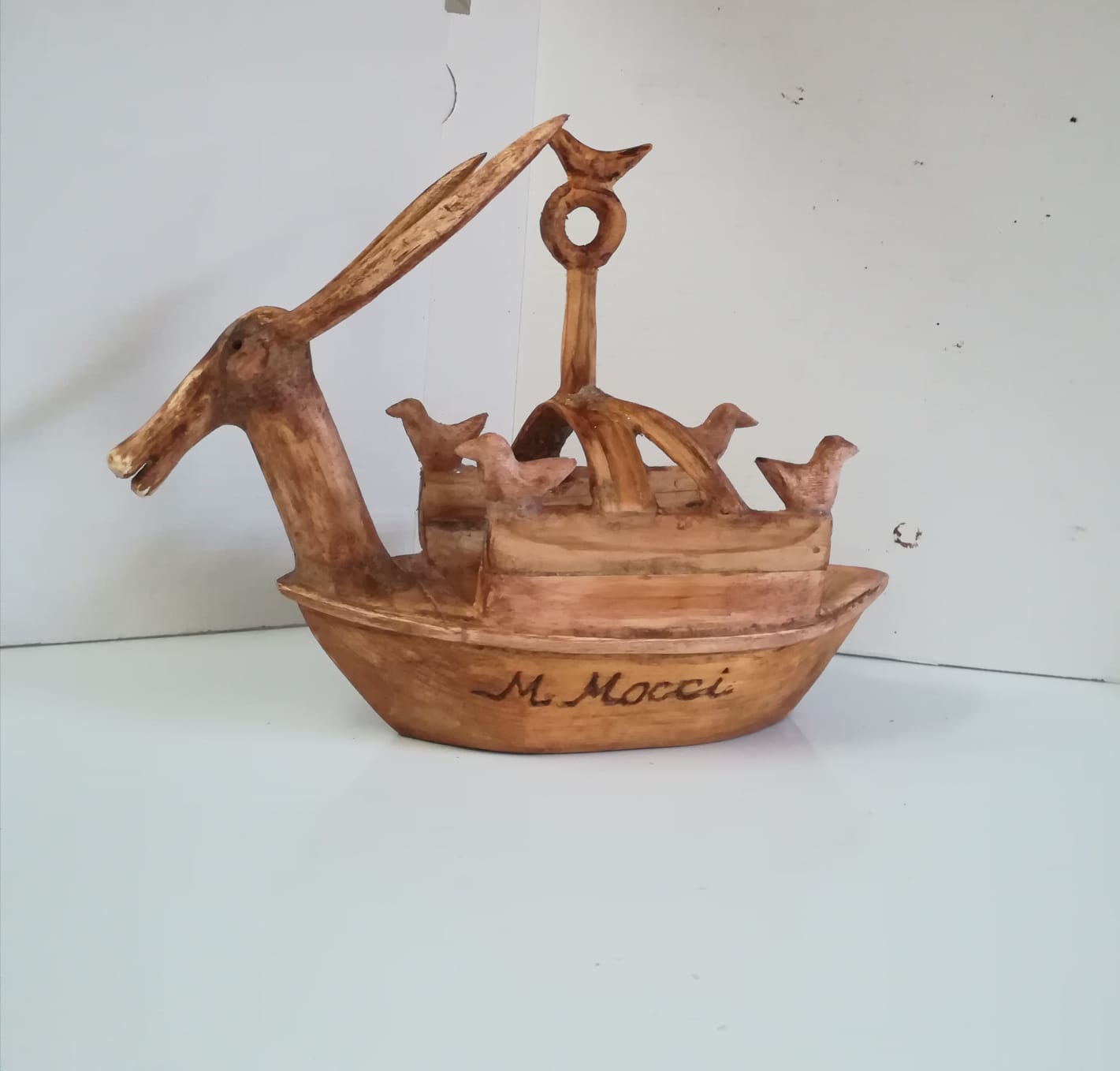 La Dea Madre Mediterranea, i bronzetti, le navicelle nuragiche, l’Offerente o il Barbetta rinvenuto a Matzanni, in agro di Vallermosa (SU), le maschere fenicio-puniche, ma anche le ancestrali maschere dei carnevali sardi, le lucerne di epoca romana, la ceramica greca antica, sino ad a qualche richiamo all’iconografia cristiana: questi lavori, ma anche tanti altri che meriterebbero di essere citati (ma soprattutto visti), mostrano qual è la maestria dell’artista-artigiano di Villacidro, Mario Mocci, nella ricostruzione di reperti archeologi.