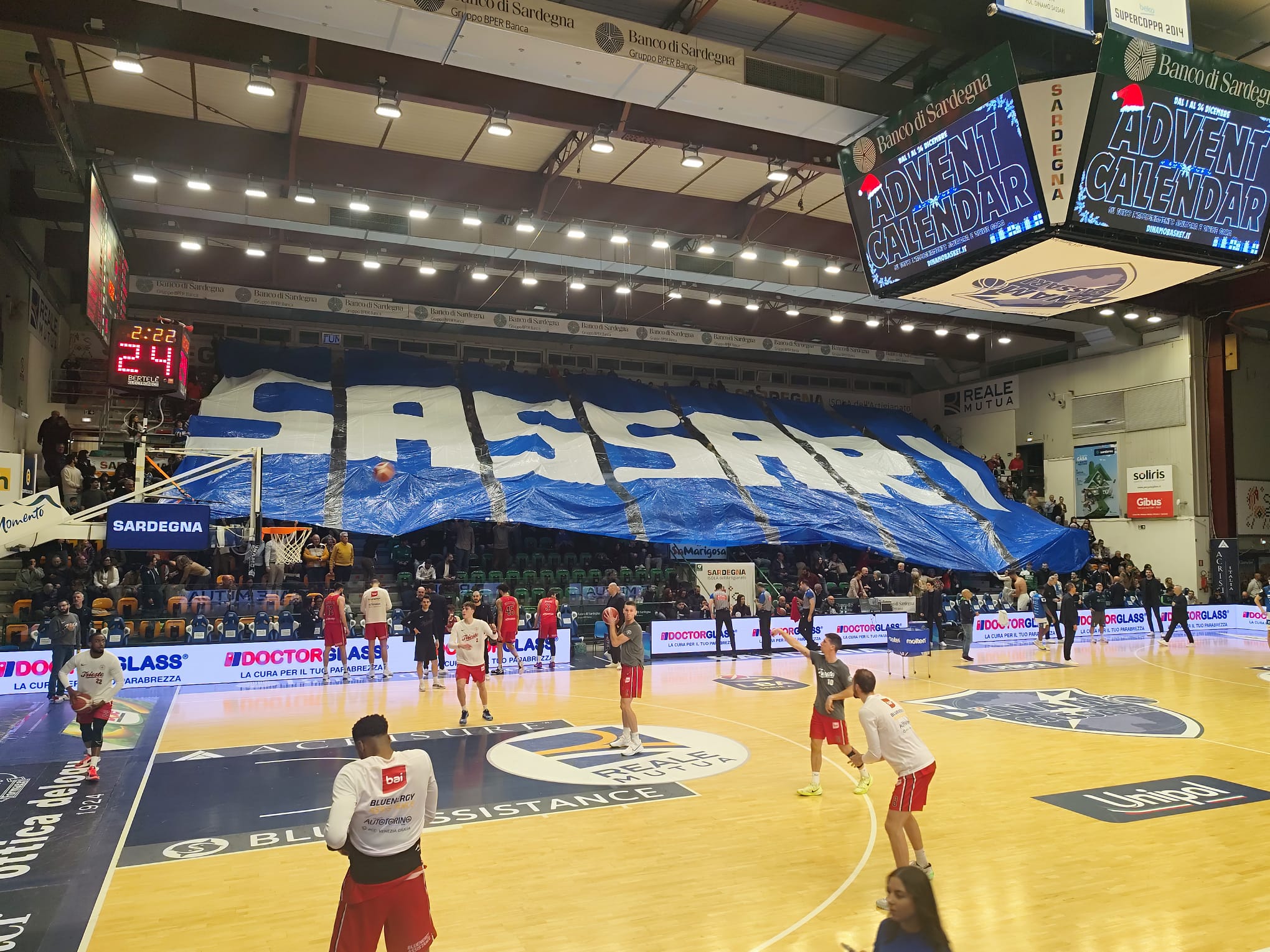 Grande entusiasmo da parte del pubblico, mostrato sin dal riscaldamento pre-partita: dalla tribuna laterale è stato mostrato un enorme striscione con la scritta SASSARI, mentre in generale il pubblico ha sventolato bandiere bianche e blù, come spesso accaduto in passato