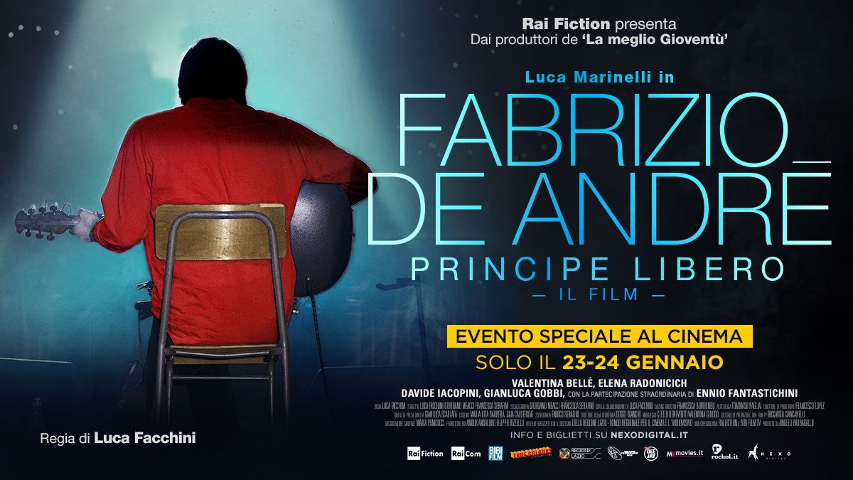 «Io sono un principe libero e ho altrettanta autorità di fare guerra al mondo intero quanto colui che ha cento navi in mare». C’è una citazione del pirata britannico Samuel Bellamy scritta nelle note di copertina di uno dei dischi più belli di Fabrizio De André, “Le nuvole”. Un omaggio alla poetica e all’umanità del più grande poeta italiano degli ultimi cinquant’anni. Con “Fabrizio De André. Principe libero“, il regista Luca Facchini ci racconta la biografia del pilastro della musica italiana Fabrizio De André. Il film sarà proiettato in esclusiva in trecento sale italiane, il 23 e 24 gennaio, tre ore imperdibili per gli amanti del Faber e delle sue canzoni.