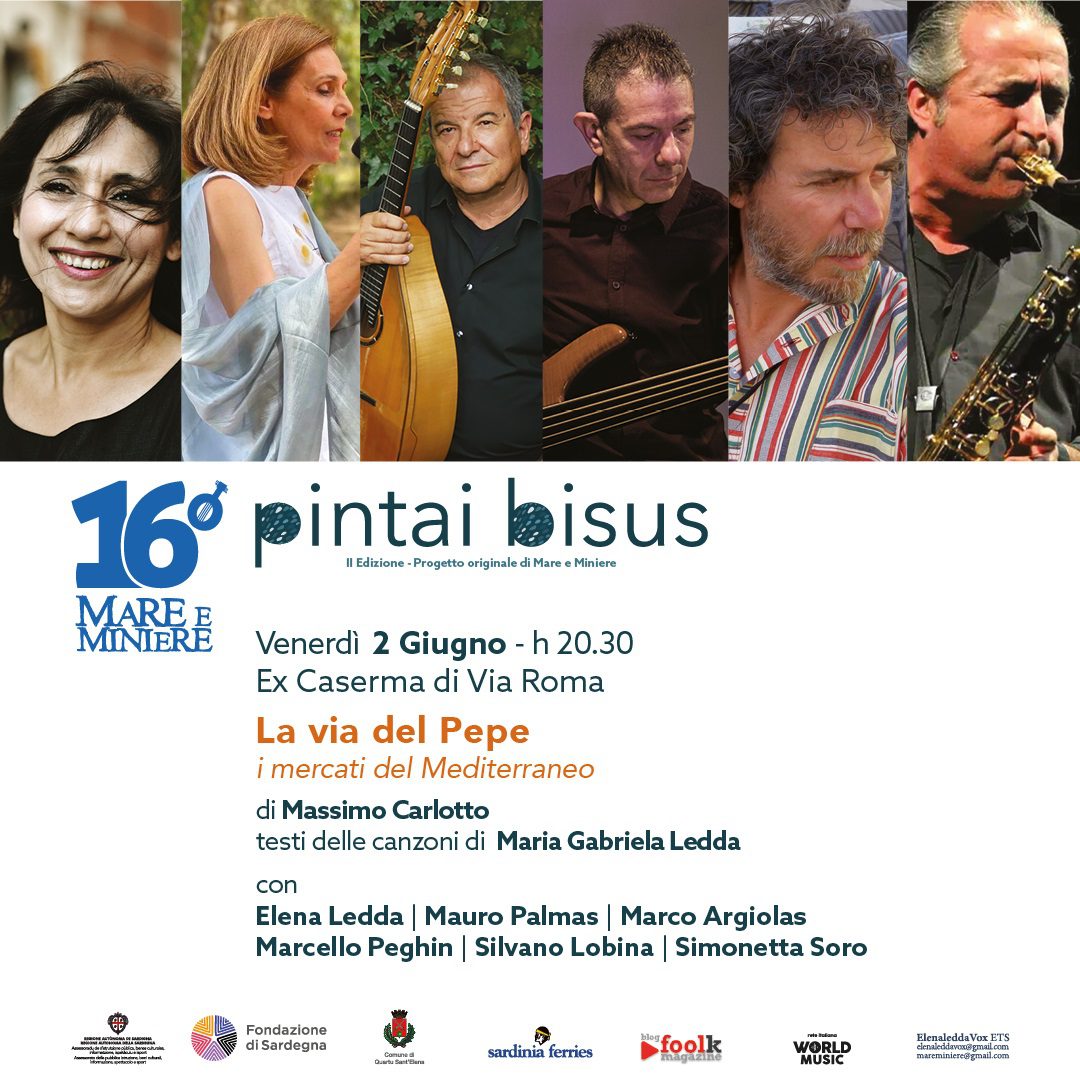 Dopo la mattinata di domani (domenica 28) a Foxi, Pintai bisus tornerà in città per vivere il suo terzo e ultimo appuntamento, in programma venerdì 2 giugno con inizio alle 20.30 all’Ex Caserma in via Roma. In quest’epoca di migrazioni, Quartu Sant’Elena si è distinta per la sua vocazione all’inclusione e all’accoglienza, un’evoluzione contemporanea dell’antica tradizione di ospitalità con cui la città affronta le diversità interpretandole come un valore. Prendendo spunto dal racconto “La via del pepe” dello scrittore Massimo Carlotto, che narra le vicende di un giovane migrante africano, la cantante Elena Ledda con Mauro Palmas al liuto cantabile, Marco Argiolas al duduk e varie ance, Marcello Peghin alla chitarra, Silvano Lobina al basso e con la voce recitante di Simonetta Soro, daranno forma a un affresco di parole e musica ironico e fiabesco sui temi del viaggio, della morte e della speranza: uno spettacolo che si annuncia in grado di trasfigurare la realtà persino nei suoi temi più difficili.