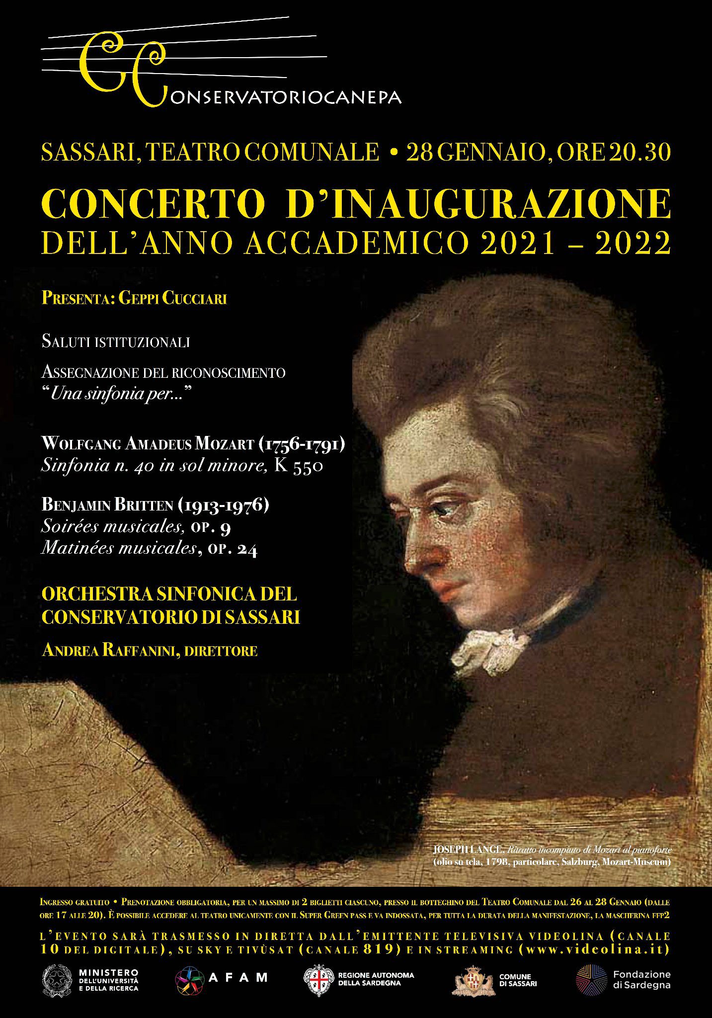 Il programma della serata propone la Sinfonia n. 40 in sol minore K 550 di Wolfgang Amadeus Mozart e le due sinfonie Soirées musicales, op. 9 e Matinées musicales, op. 24 di Benjamin Britten. Composta insieme alla n. 39 e alla n. 41, detta Jupiter, in poco più di 45 giorni nell’estate del 1788, la Sinfonia n. 40 è una delle più note, eseguite e registrate composizioni di Mozart. La celerità della genesi, però, non sembra motivata da una pressante commissione: e si credette a lungo che quelle che possono essere a ragione considerate il testamento mozartiano nel genere della sinfonia, non fossero neanche mai state eseguite nei tre anni seguenti, prima che sopraggiungesse la precoce morte del compositore all’età di 35 anni.