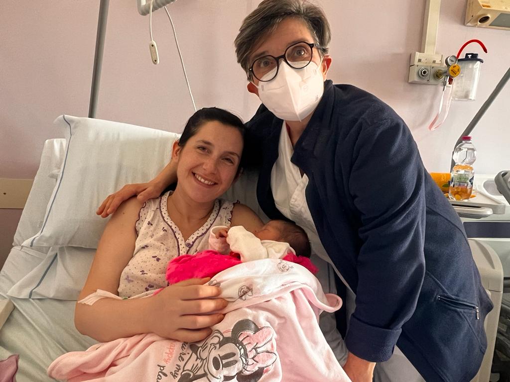 La signora Scarpa ha partorito con parto spontaneo ed è stata assistita dall’ostetrica Valeria Poddighe, dalla ginecologa Alessandra Gulotta, da Stefano Mazzari e Martina Bonfili medici specializzandi e da Moira Fini operatrice sociosanitaria.