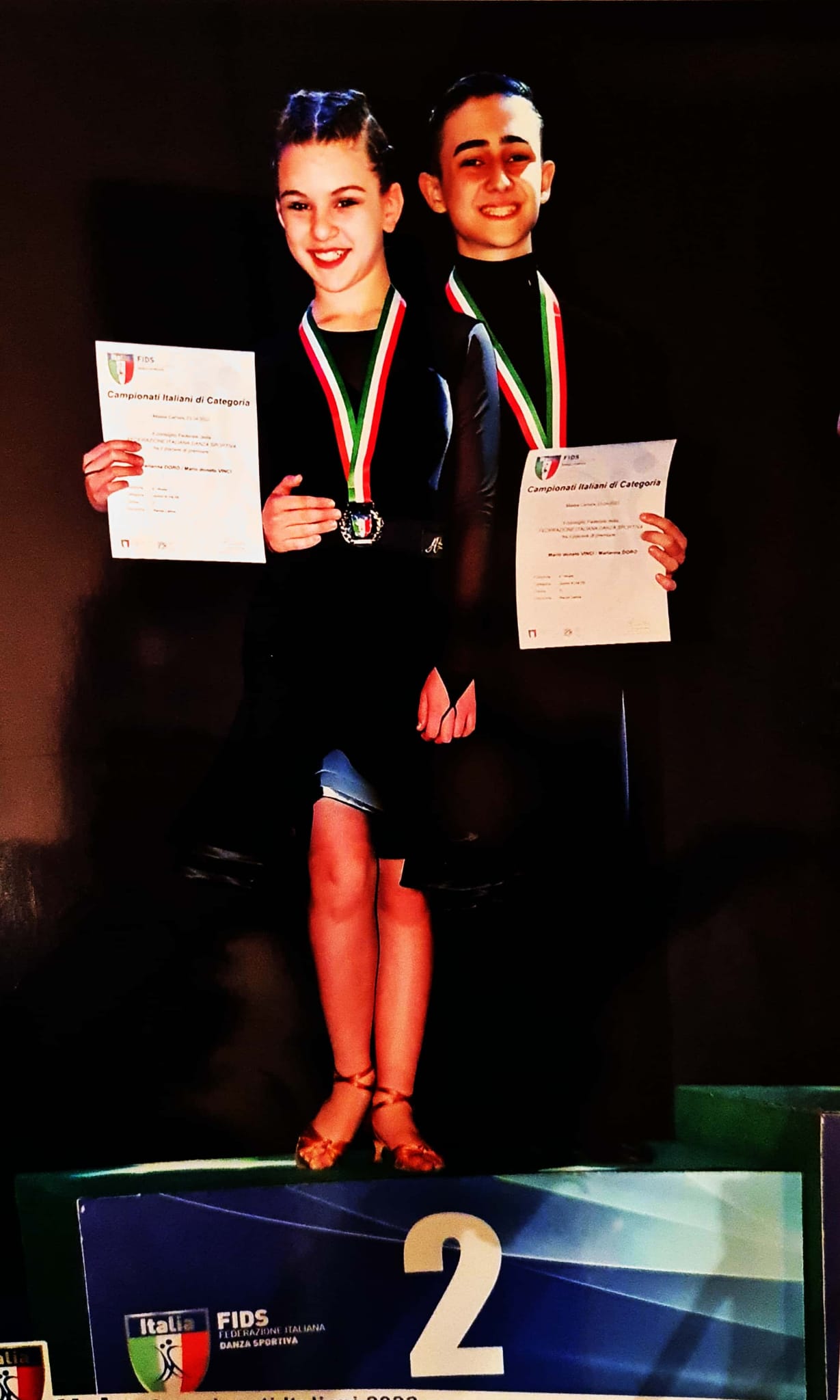 Solo un gradino li separa dalla vetta più alta del podio nazionale: i giovani sassaresi Mario Donato Vinci e Marianna Doro nei giorni scorsi hanno conquistato il titolo di vice campioni italiani di Danza latino americana per la classe C 14-15 anni dei Campionati di danza sportiva FIDS, in corso a Carrara-Fiere di Marina di Carrara.