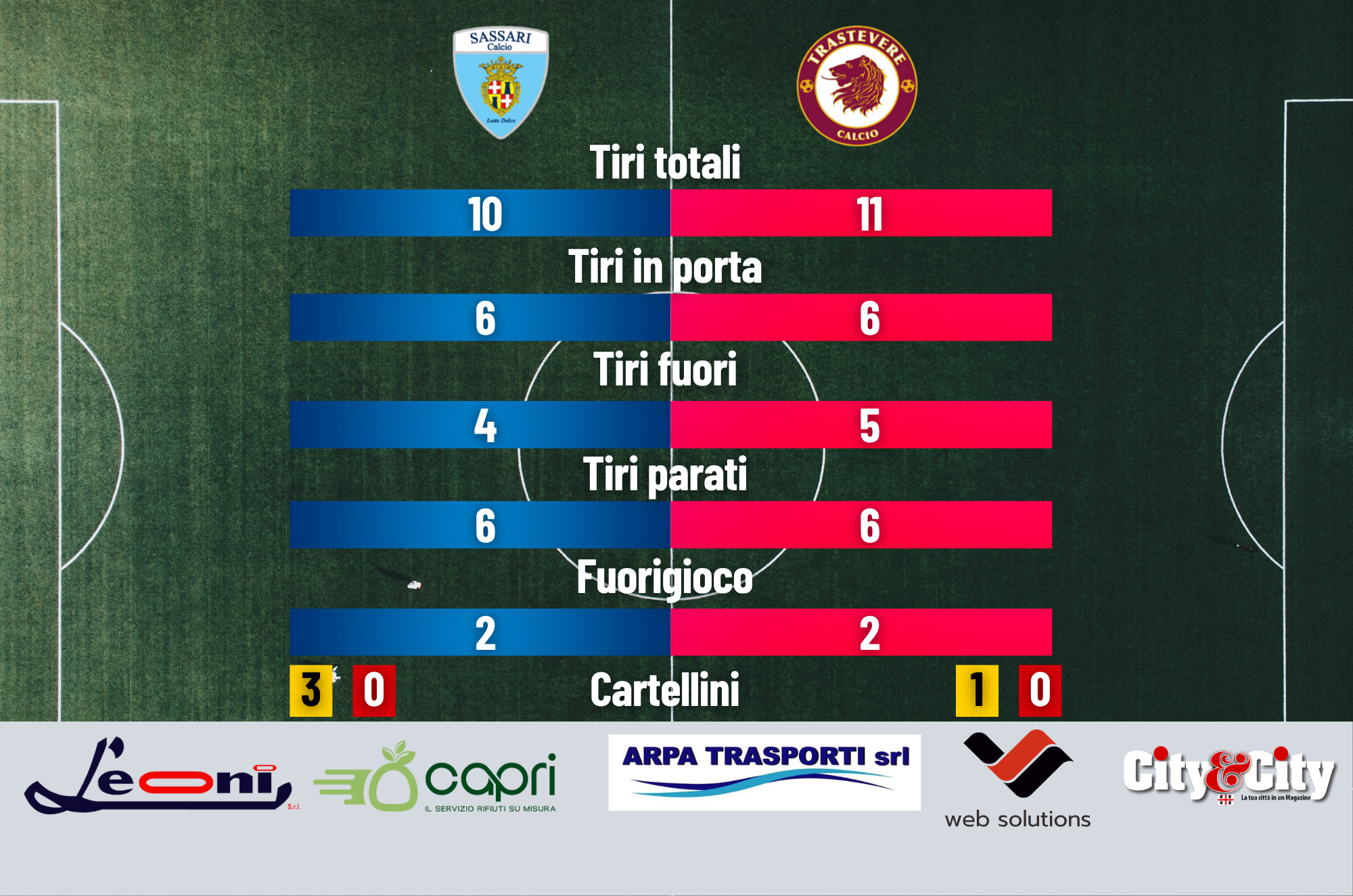 SASSARI – Il cielo plumbeo e la pioggia caduta oggi pomeriggio su Sassari sono una più che ottima rappresentazione della situazione che sta vivendo il Latte Dolce. Con i capitolini di Bernardini arriva la 3^ sconfitta consecutiva, la 4^ in totale in campionato e la 3^ in casa. Non basta la reazione nel finale di primo e di secondo tempo, non basta la capocciata imperiosa di Loru a riaprire la partita dopo la doppietta di Lorusso (con entrambi i gol propiziati da errori difensivi, il secondo su rigore causato da una trattenuta ingenua di Pinna su Simone Mattia). Il Trastevere passa e conquista 3 punti importanti nella corsa alla vetta, occupata dalla Scafatese prossima avversaria di una squadra sassarese che, ora, dovrà ripartire dalla buona prestazione messa in campo nel finale per rialzarsi da questo periodo negativo.