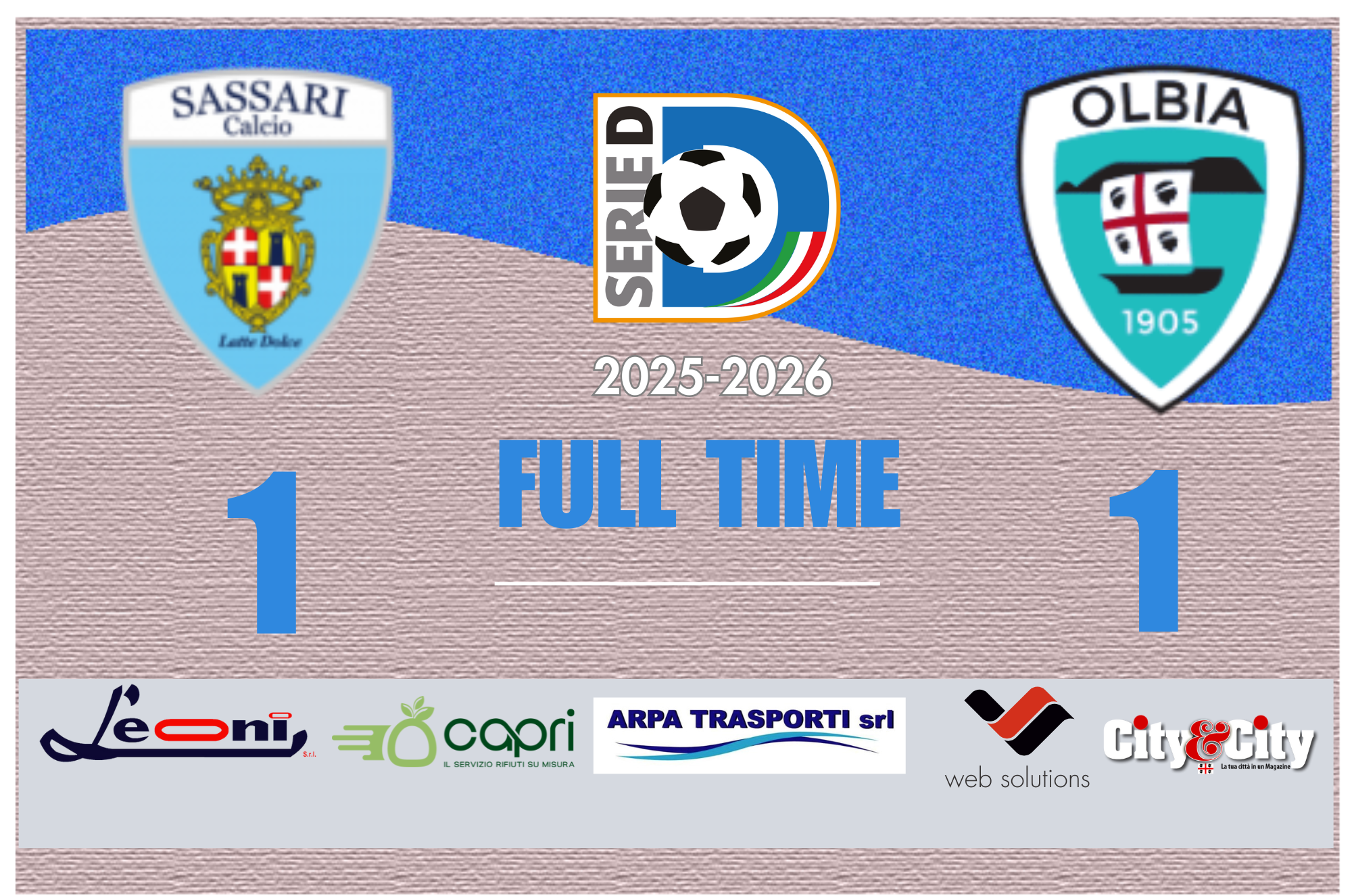 LATTE DOLCE (3-5-2): Salvato; Aiello, Cabeccia, Mudadu (1’ st Tokić); Mayr, Piredda, Tesio, Cotugno, Luiu (41’ st Tannor); Loru (33’ st Fois), Pulina (33’ st Di Paolo).