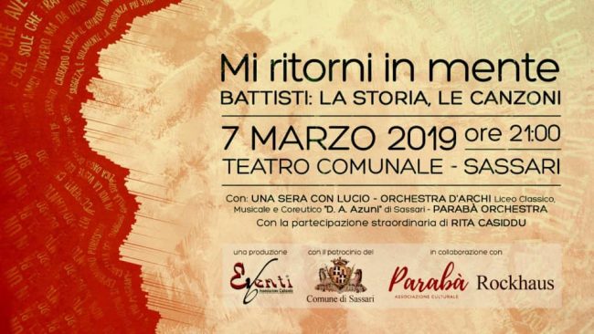 L’associazione Culturale Eventi6 con l’Associazione Parabà e il patrocinio del Comune di Sassari presenta il concerto-spettacolo “Mi ritorni in mente. Battisti: la storia, le canzoni”
