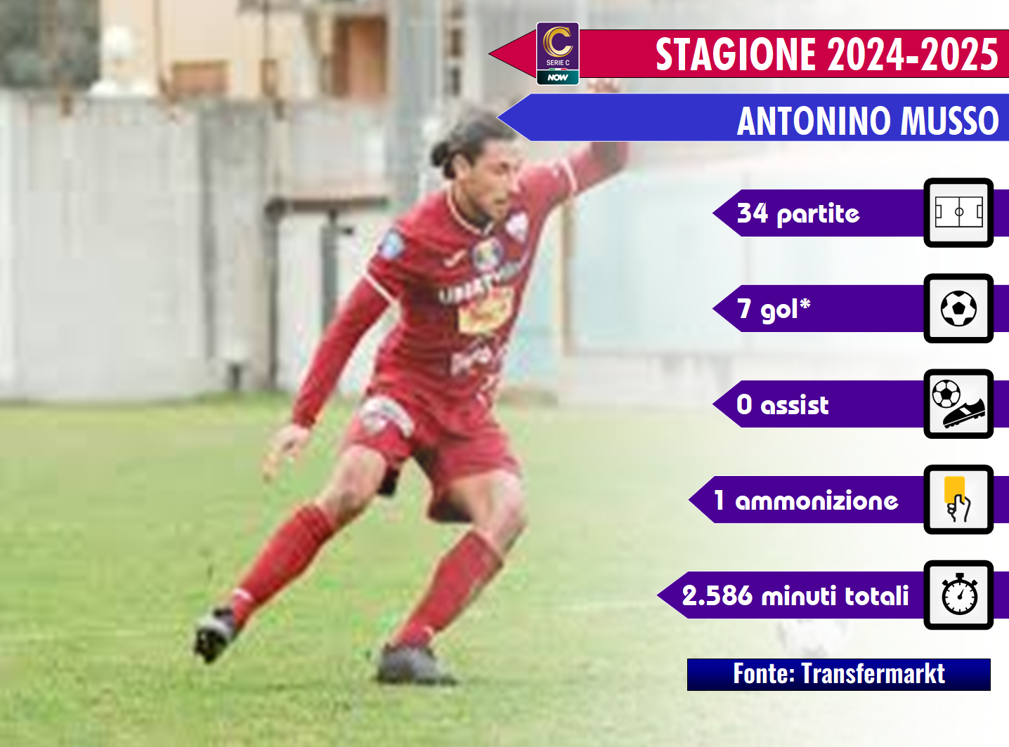 IL PROFILO. Classe ’99, alto 183 cm, è dotato di un ottimo destro con il quale può adattarsi alle varie posizioni: da unica punta a componente di una coppia d’attacco, potendo anche agire sulle fasce in caso di necessità grazie alla sua esplosività in fase offensiva. La scorsa annata con il Sorrento in Serie C, Musso ha segnato 7 gol in 34 presenze ufficiali, ma il suo bottino reale sale a 12 gol se si considerano anche le marcature contro Taranto e Turris, poi escluse dal campionato. Con i costieri, sotto la guida di Mirko Conte, veniva solitamente schierato in un 4-3-3 con l’obiettivo di rappresentare un riferimento offensivo, agendo però anche in altri schemi quali 4-3-1-2, 3-5-2 e 3-4-1-2 (questi ultimi due nell’esperienza al Bra).