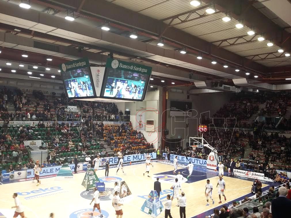 Non c’è stata partita dall’inizio del secondo tempo. Terza sconfitta consecutiva davanti al pubblico amico dei rabberciati campioni d’Italia del Banco di Sardegna, che rovinano a Meo Sacchetti la festa delle trecento partite e del magico cubo segnapunti sull’impianto sassarese.